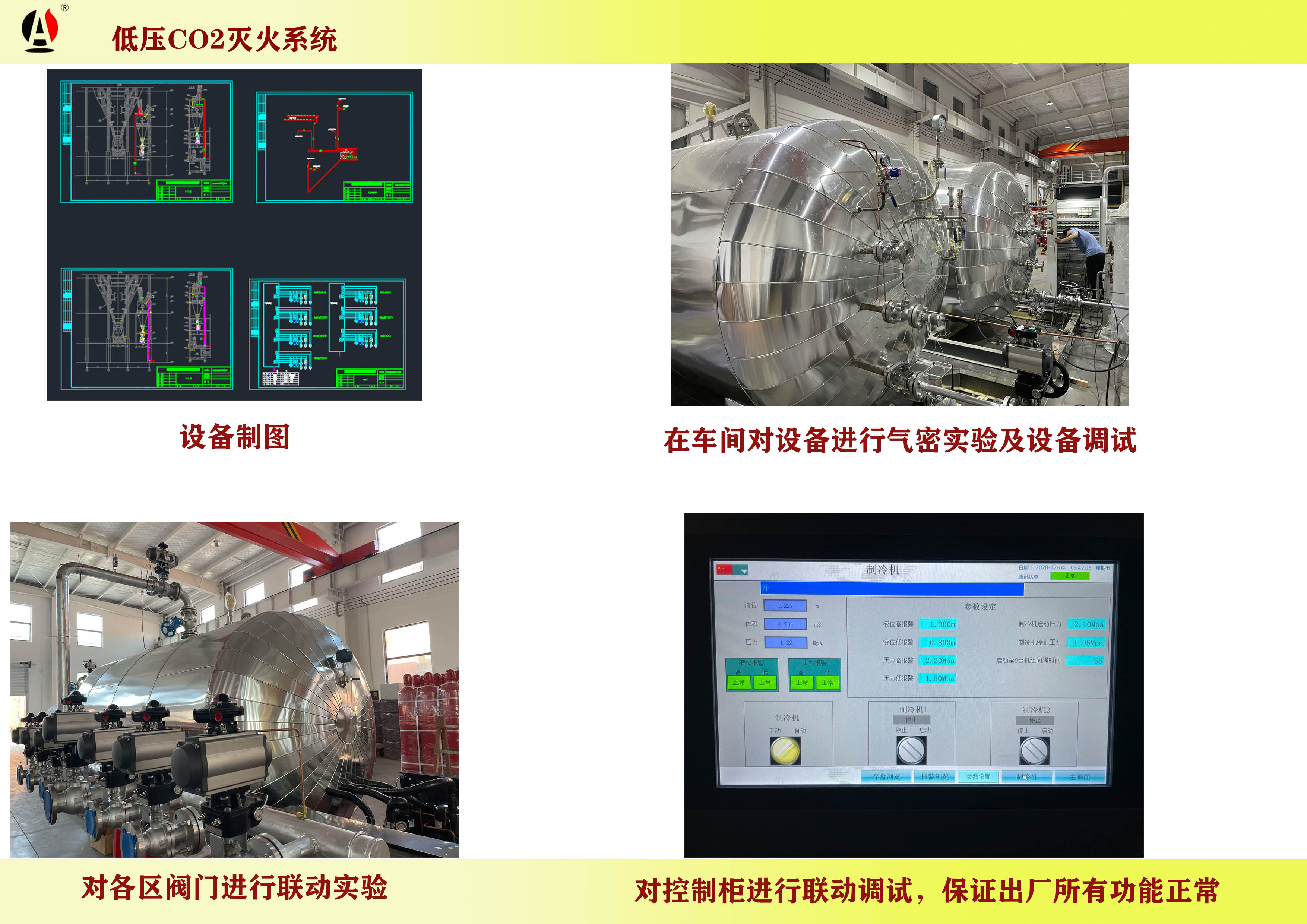 我公司生產(chǎn)的低壓二氧化碳滅火設(shè)備具有自動(dòng)、手動(dòng)和應(yīng)急操作三種啟動(dòng)方式。